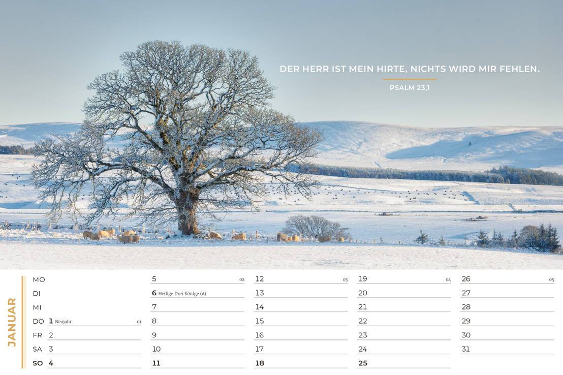 Mit zwölf abwechslungsreichen Bildern, passenden Bibelversen und ermutigenden Texten verspricht der Life-is-More Panoramakalender 2026 Freude und Hoffnung frei nach dem Jahresmotto „geliebt, gerettet, gesegnet“. Die Grundbotschaft: Wer mit Jesus geht, kommt sicher ans Ziel.